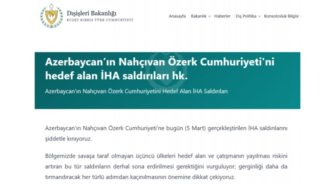 Şimali Kipr Naxçıvana dron hücumunu qətiyyətlə pisləyir