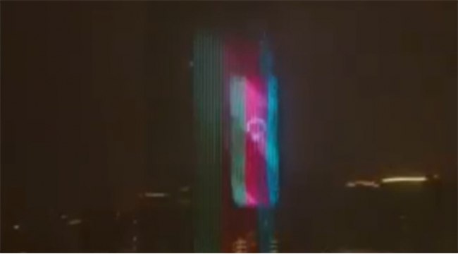 Belqraddakı binalardan biri Azərbaycan və Serbiya bayraqlarının rəngləri ilə işıqlandırılıb