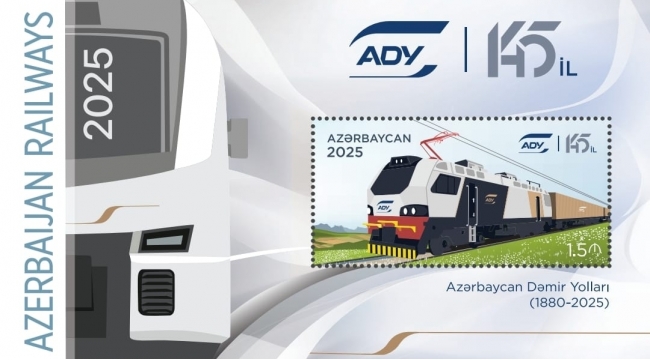 Azərbaycanda dəmir yollarının yaranmasının 145 illiyi münasibətilə poçt markası buraxılıb