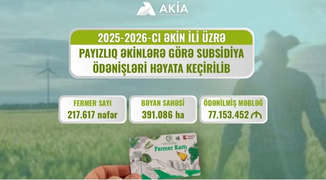 Fermerlərə 77 milyon manatdan çox subsidiya ödənilib