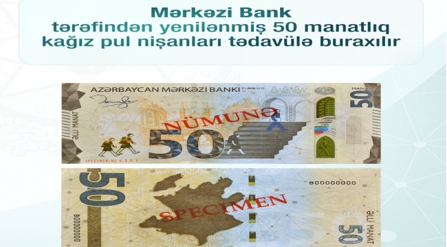 Azərbaycanda yenilənmiş 50 manatlıq tədavülə buraxılır