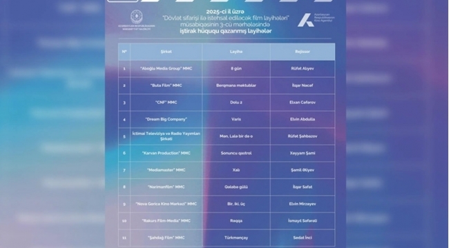 Dövlət sifarişi ilə istehsal ediləcək 10 film layihəsi müsabiqənin növbəti mərhələsinə keçib