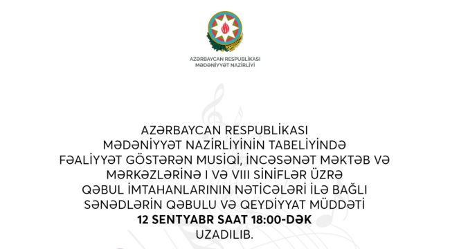 Musiqi məktəb və mərkəzlərinə qəbul imtahanlarının nəticələri ilə bağlı sənədlərin qeydiyyat müddəti uzadılıb