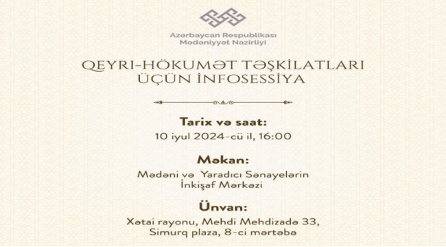 Mədəni və yaradıcı sənayelərin təşviqi üzrə qrant müsabiqəsi ilə bağlı infosessiya keçiriləcək