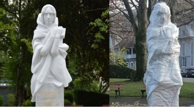 Fransada Natəvanın heykəlinə qırmızı boya atılıb