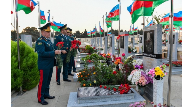 Müdafiə Nazirliyinin zabit heyəti Zəfər Günü ilə bağlı İkinci Şəhidlər xiyabanını ziyarət edib