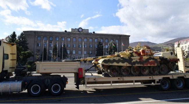 Xankəndidə Zəfər paradında düşməndən qənimət kimi götürülən hərbi texnikaların bir qismi nümayiş etdirilib