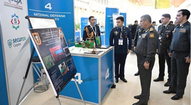 Zakir Həsənov Milli Müdafiə Universitetinə məxsus stendlə tanış olub -