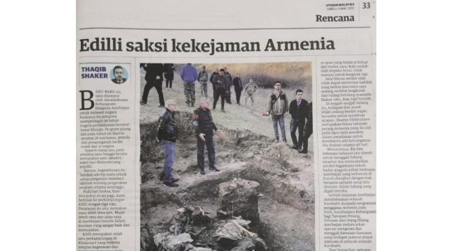 Malayziya qəzeti ermənilərin Edillidə törətdikləri vəhşiliklərdən yazıb