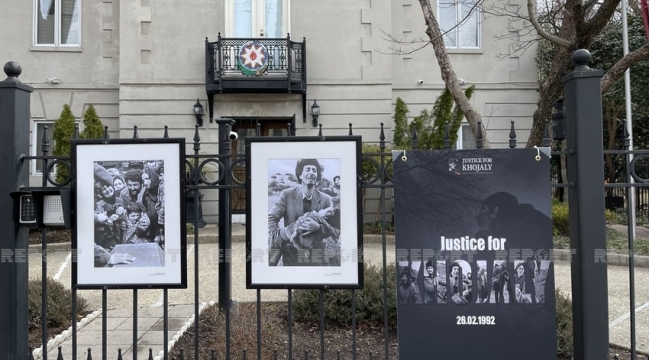 ABŞ-dakı səfirliyimizin qarşısında Xocalı soyqırımı ilə bağlı foto və plakatlar nümayiş etdirilib