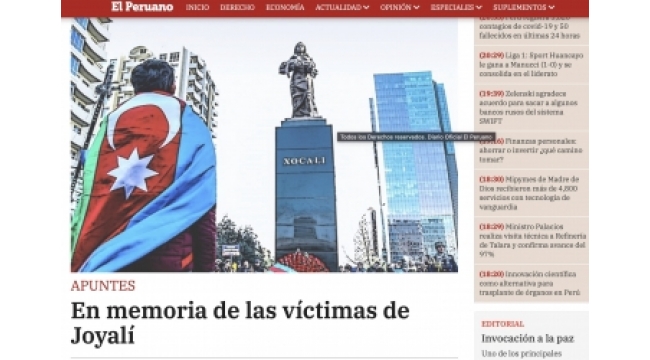 Perunun dövlət qəzetində Xocalı soyqırımı ilə əlaqədar məqalə işıq üzü görüb