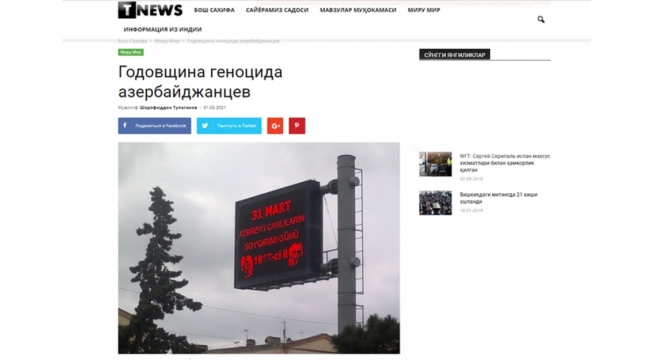 Özbəkistan portalı Azərbaycanlıların Soyqırımı Günü ilə əlaqədar material dərc edib