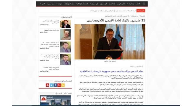 Misir mətbuatı Azərbaycanlıların Soyqırımı Günü ilə bağlı məqalə yayıb