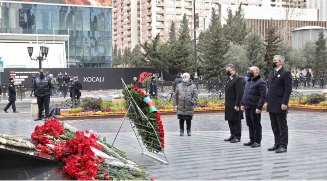 Müdafiə Nazirliyinin rəhbər heyəti Xocalı soyqırımı abidəsini ziyarət edib