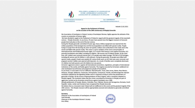 Həmvətənlərimiz Finlandiya parlamentinə müraciət edib