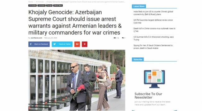 Tacikistan portalı Xocalı faciəsi barədə məqalə yayıb