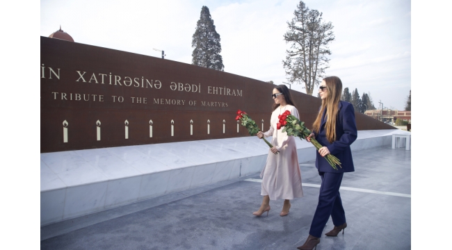 Leyla Əliyeva və Alena Əliyeva Gəncə Memorial Kompleksini və Milli Qəhrəman Natiq Qasımovun ailəsini ziyarət ediblər