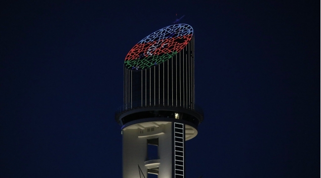 Cümhuriyyət Qülləsində Azərbaycan bayrağı - GÖRÜNTÜ