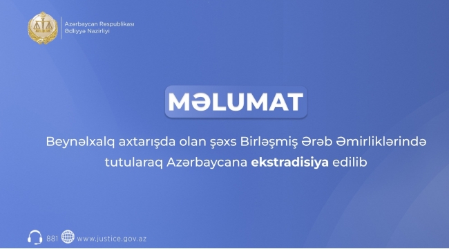 Beynəlxalq axtarışda olan şəxs Birləşmiş Ərəb Əmirliklərində tutularaq Azərbaycana ekstradisiya edilib