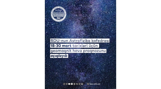 BDU-nun Astrofizika kafedrası 18-30 mart tarixləri üçün geomaqnit hava proqnozunu açıqlayıb