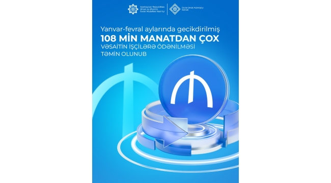 Yanvar-fevral aylarında gecikdirilmiş 108 min manatdan çox vəsaitin işçilərə ödənilməsi təmin olunub