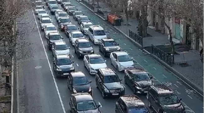 Bakının bəzi yollarında nəqliyyatın hərəkətində sıxlıq yaranıb