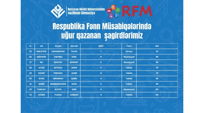 NDU nəzdində Gimnaziyanın 33 şagirdi fənn müsabiqələrində uğur qazanıb