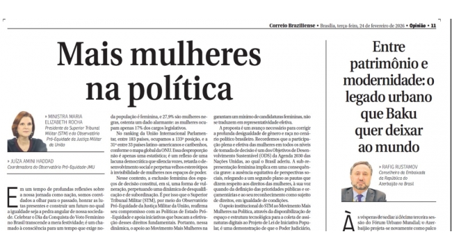 Braziliya mediasında Ümumdünya Şəhərsalma Forumunun 13-cü Sessiyasına həsr olunmuş məqalə dərc edilib