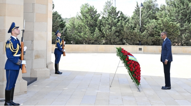 Ruanda Prezidenti Pol Kaqame Bakıda şəhidlərin xatirəsini anıb