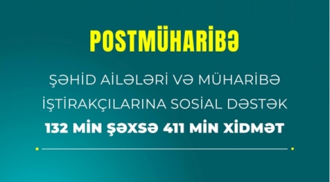 Postmüharibə dövründə şəhid ailələri üzvləri və müharibə iştirakçıları olan 132 min şəxsə 411 min xidmət göstərilib