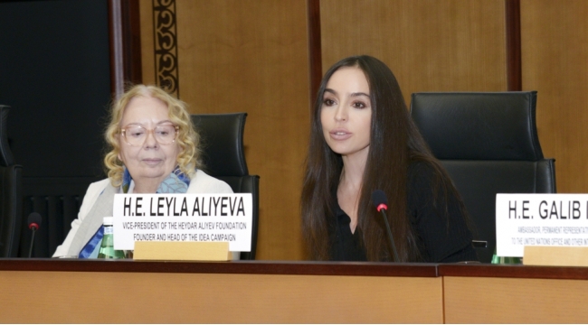 Leyla Əliyeva BMT-nin Cenevrə ofisində “Azərbaycan otağı” ilə tanış olub