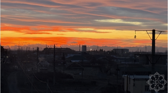 İmişlidə qürub çağı səmada görünən qarışıq rənglər xoş mənzərə yaradıb