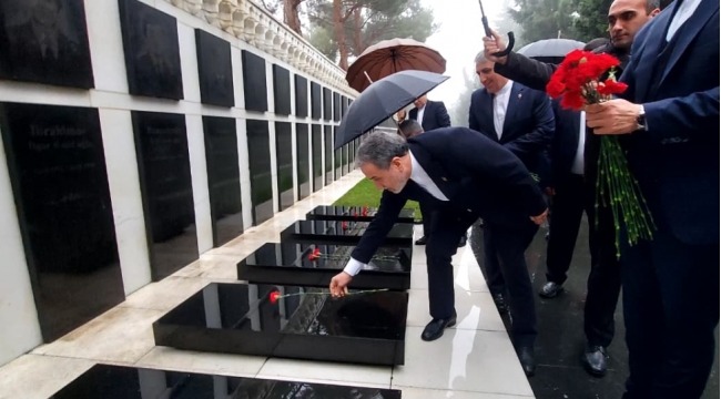 İranın xarici işlər naziri Bakıda şəhidlərin xatirəsini anıb