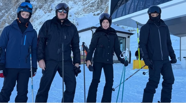 Prezident nəvələri ilə Şahdağda xizək sürdü -