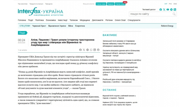 Ukrayna mediası Azərbaycan və Ermənistan arasında sülh sazişini tarixi hadisə adlandırıb