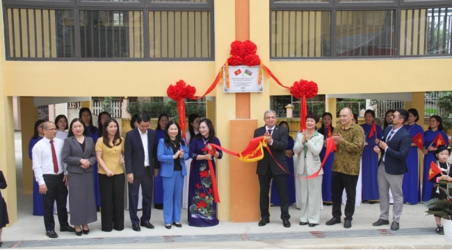 Azərbaycan Vyetnamın qasırğadan zərər çəkən Lukyen qəsəbəsində şagirdlərə məktəb binası hədiyyə edib