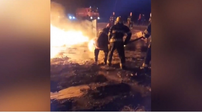 Şəmkirdə istixana kompleksində yanğın olub, 5 ton mazut yanıb -