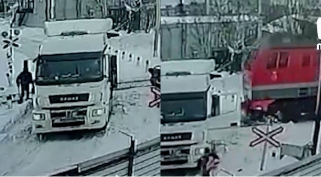 Moskva yaxınlığında elektrik qatarı relsdə ilişən yük maşınını vurub -