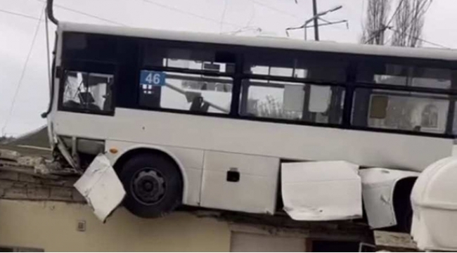 Günəşlidə avtobus yaşayış evlərinin üstünə çıxdı -