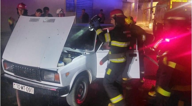 FHN: Şəmkirdə minik maşını yanıb -