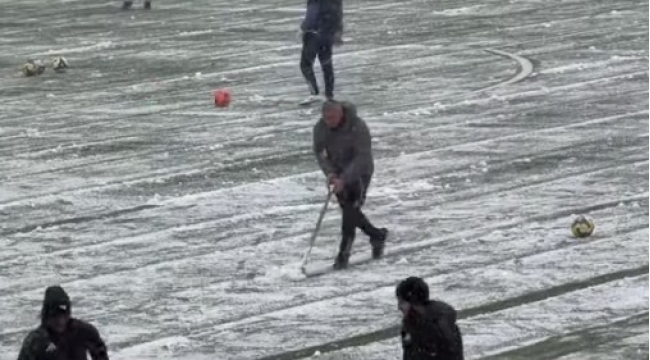 Qurban Qurbanov stadionda qar təmizləyir -