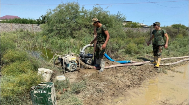 Hacıqabulda su basmış yerlərdə intensiv tədbirlər davam etdirilir -