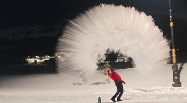 Türkiyədə qaynar su havada donur -