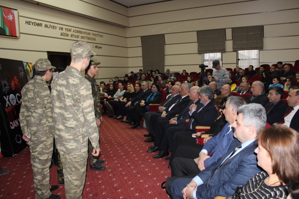 Sonra gimnaziyanın müəllimləri Sevinc Hüseynovanın və Validə Cəlilovanın rəhbərliyi ilə şagirdlərin İftixar Piriyevin eyniadlı əsəri əsasında hazırladıqları “Soyqırımı tarixinin dastanı: İftixar” adlı ədəbi-bədii kompozisiya göstərildi.