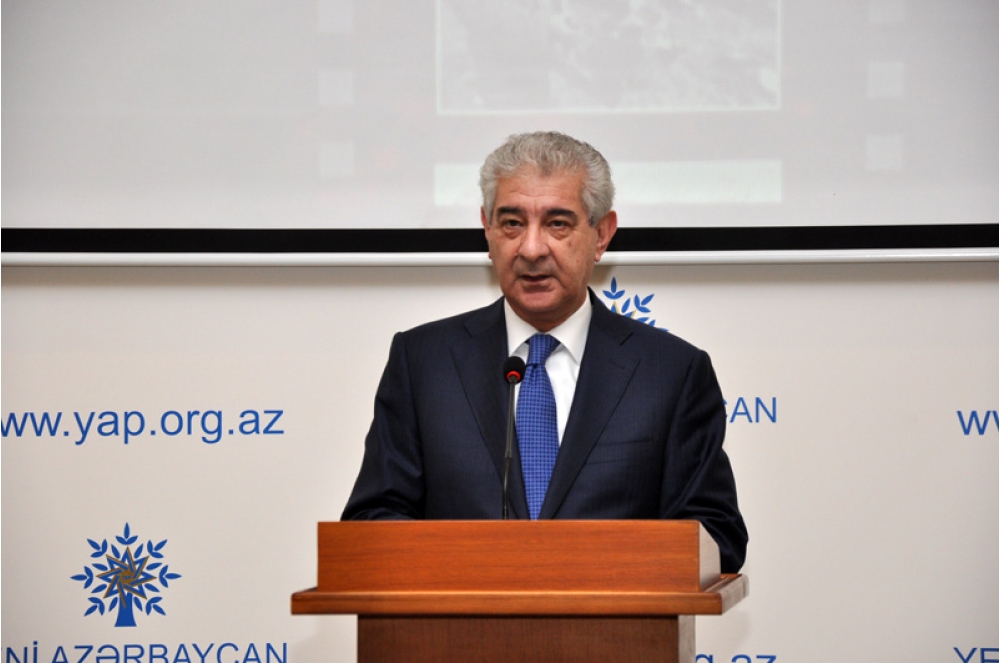 Tədbirdə çıxış edən Azərbaycan Respublikası Baş Nazirinin müavini, YAP Sədrinin müavini-İcra katibi Əli Əhmədov bildirib ki, Azərbaycan xalqı tarix boyu faciələrlə üzləşib. 28 il öncə baş vermiş Xocalı qətliamı isə Azərbaycan tarixində ən dəhşətli faciələrdən biridir. Bir gecədə erməni-daşnak silahlı qüvvələri, onlara havadarlıq edənlər tərəfindən Xocalı şəhəri tamamilə məhv edilib, yer üzündən silinib. Xocalı soyqırımı nəticəsində 63-ü uşaq, 106-sı qadın, 70-i qoca və qarı olmaqla 613 nəfər qətlə yetirilib, 1275 nəfər girov götürülüb, 150 nəfər itkin düşüb, 8 ailə tamamilə məhv edilib, 25 uşaq hər iki, 130 uşaq bir valideynini itirib. Xocalı faciəsi hərbi cinayətdir. Çünki qətlə yetirilən insanlar dinc, köməksiz insanlar olub. Bu mənada bu qətliam təkcə Azərbaycan xalqının başına gətirilən faciə deyil, Xocalı soyqırımı XX əsrdə dünyanın ən dəhşətli qətliamlarından biridir, bəşəriyyətə, insanlığa qarşı cinayətdir. Azərbaycan xalqı bu faciəni unutmur və heç zaman unutmayacaq. Xocalı faciəsi bizim qan yaddaşımıza çevrilib. Hər il xalqımız bu faciəni, onun qurbanlarının xatirəsini anır”.