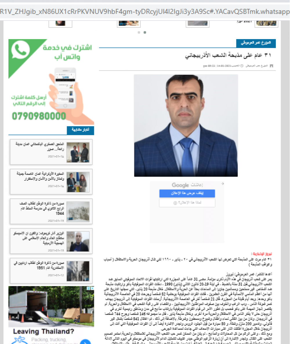 Jurnalist Süleyman İsmayılbəyli İordaniya mətbuatında 20 Yanvar faciəsindən yazdı