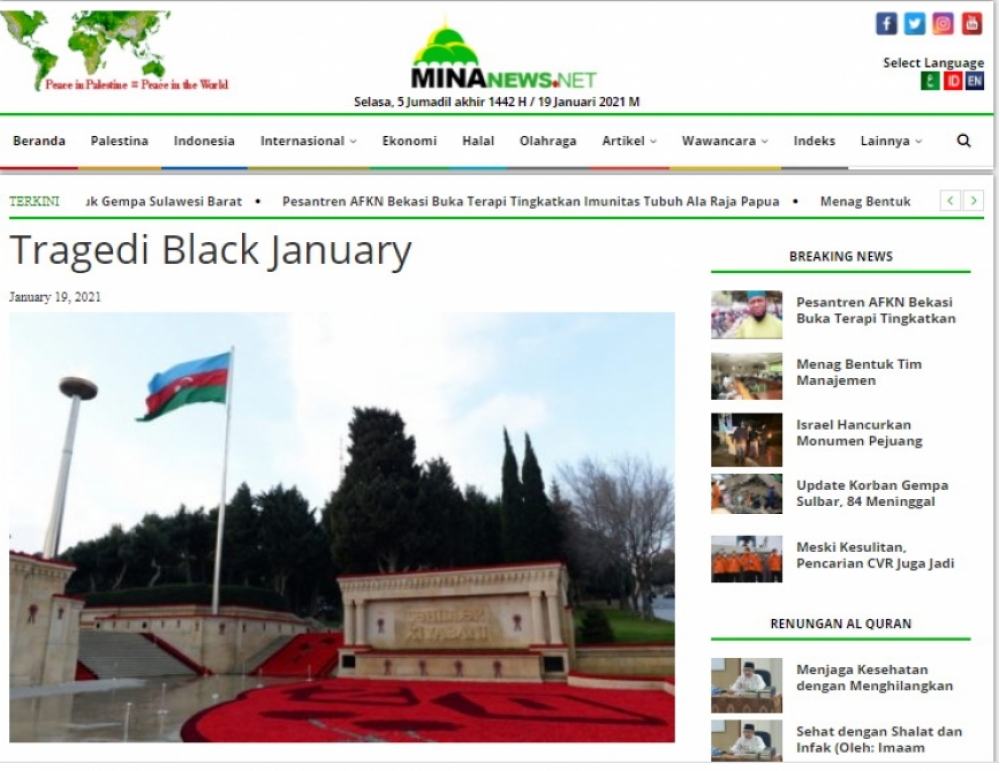 20 Yanvar faciəsinin 31-ci ildönümü ilə əlaqədar İndoneziya mətbuatında ingilis və İndoneziya dillərində məqalələr dərc olunub.