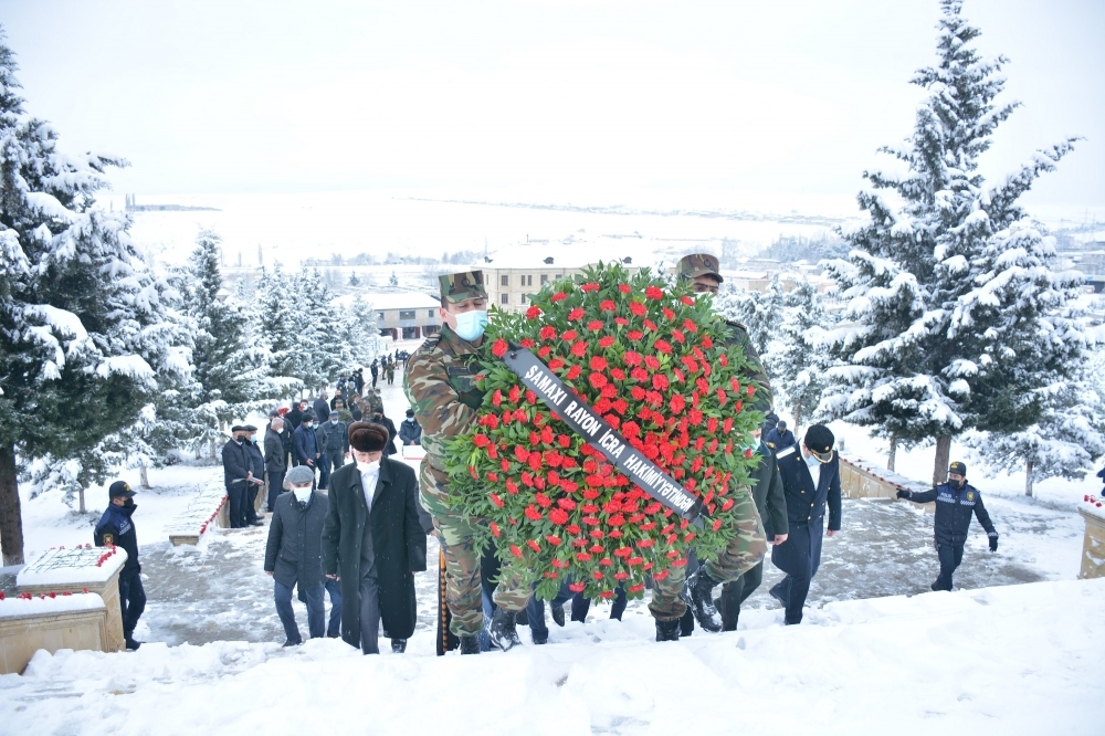 Sonra mərasim iştirakçıları Qanlı Yanvar faciəsində şəhid olmuş rayon sakinləri Məmmədov Vidadi Üzeyir oğlunun və İsrayılov Ağanəzər Araz oğlunun Şamaxı şəhərinin Yeddi Günbəz və Laləzar qəbiristanlıqlarındakı məzarlarını ziyarət ediblər.