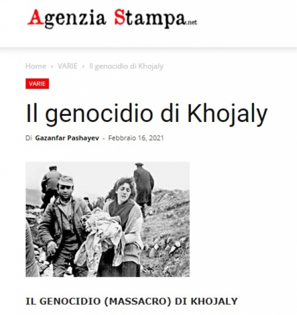 İtaliyanın “agenziastampa.net” xəbər portalında “Xocalı soyqırımı” sərlövhəli məqalə dərc olunub.