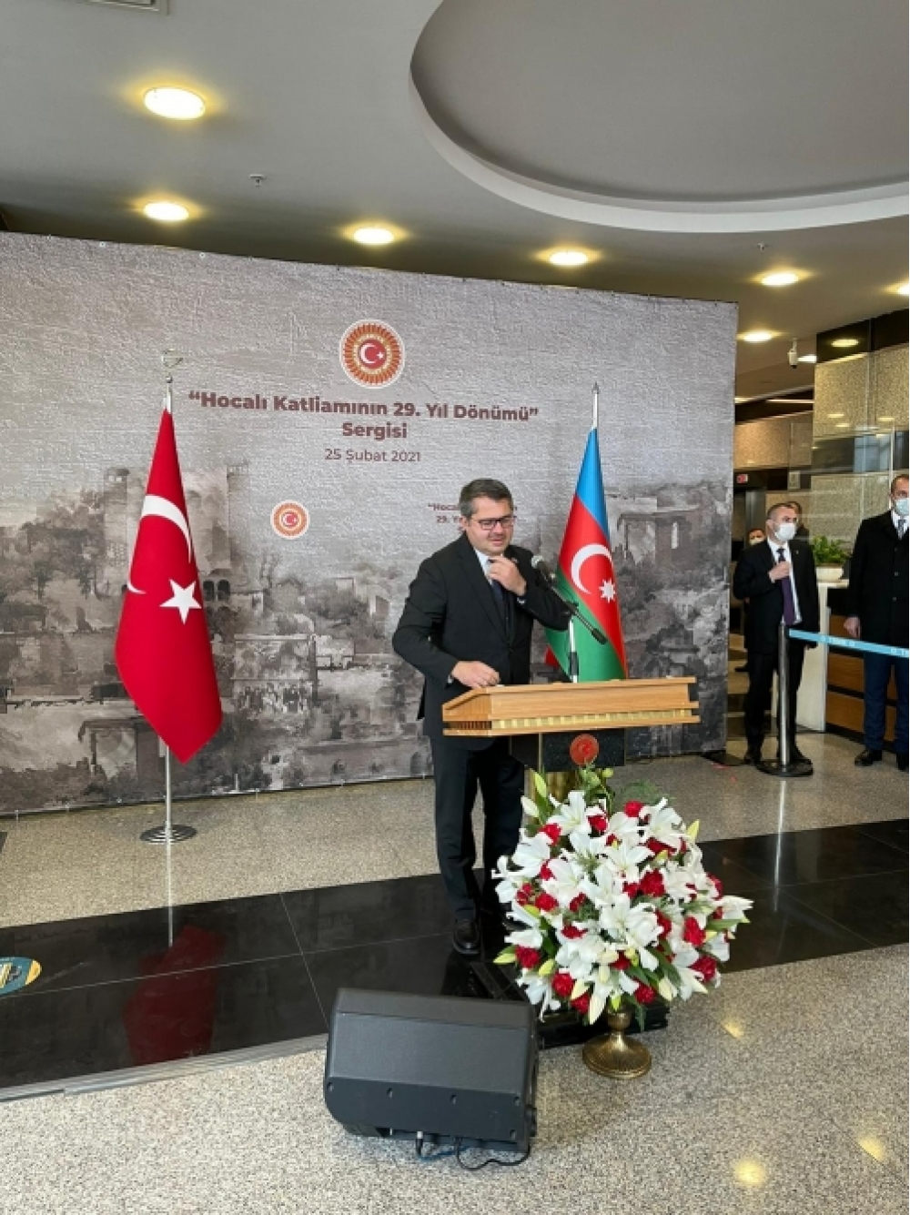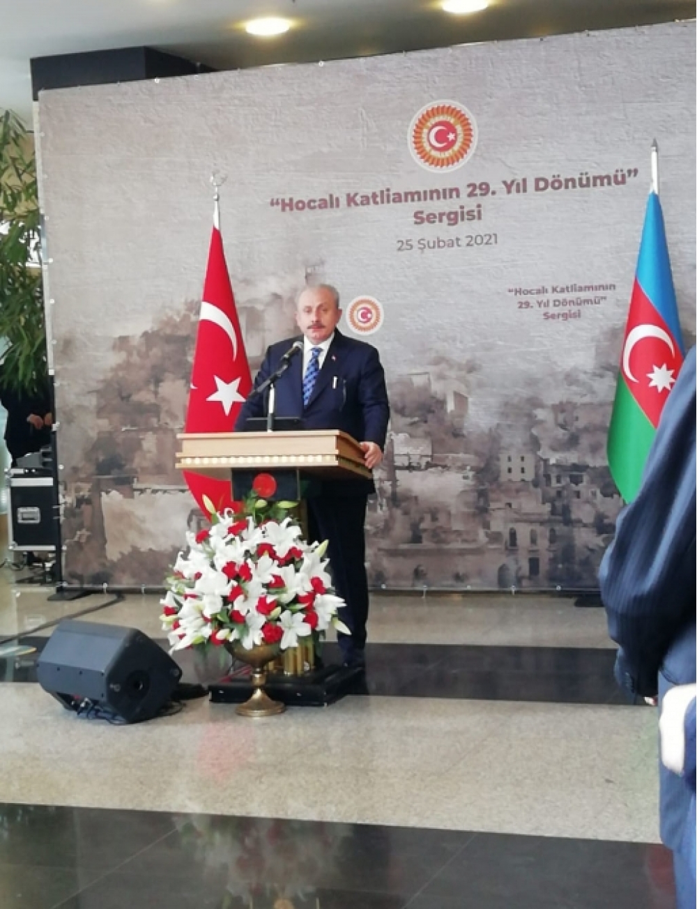 Çıxışında Xocalı soyqırımının dəhşətlərini öz gözləri ilə görən xarici jurnalistlərin ifadələrinə, eləcə də təcavüzkar Ermənistanın hərbi komandanlarının bu bəşəri cinayəti etiraf etmələri barədə faktlara müraciət edən Türkiyə Böyük Millət Məclisinin sədri Mustafa Şentop mərasim çərçivəsində mövzu ilə bağlı geniş müsahibə verib.